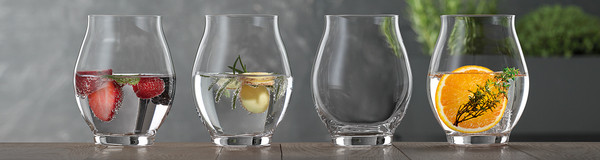 Sklo na různé druhy nealkoholických i alkoholických nápojů proslulých značek jako je Riedel, Rosenthal, Nachtmann nebo WMF. Svou skleničku si zde vybere každý. Kromě různorodých sklenic na vodu se zde skrývají i sklenice na koktejly, na Martini, longdrink nebo na oblíbené Cafe Latte.